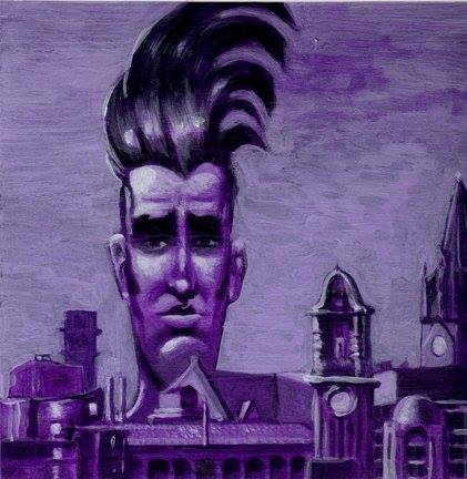 This as an 8 x 8 acrylic rough for a larger painting of the musician, Morrissey.