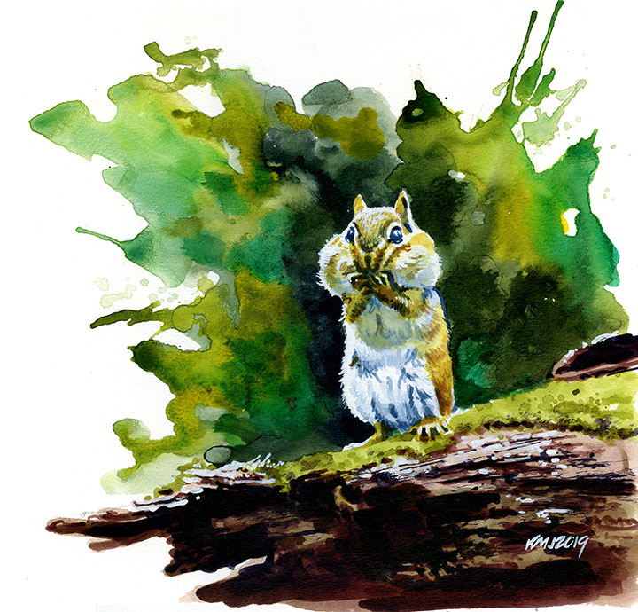 A fun piece with one hungry chipmunk. Ink on watercolor board, 9 x 7.