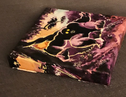 This is an original repainting of my magic card, Guardian Beast, on 5" x 5" canvas (.75" depth). Acrylic ink coated with an archival varnish. Painted around the edges in case it is not framed.