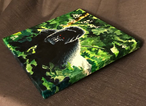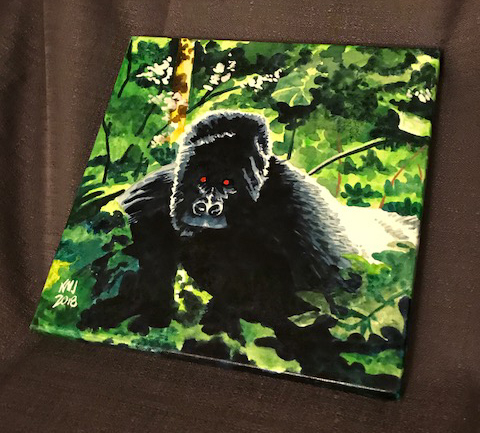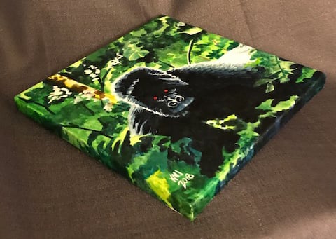This is an original repainting of my magic card, Kird Ape, on 10" x 10" canvas (.75" depth). Acrylic ink coated with an archival varnish. Painted around the edges in case it is not framed.