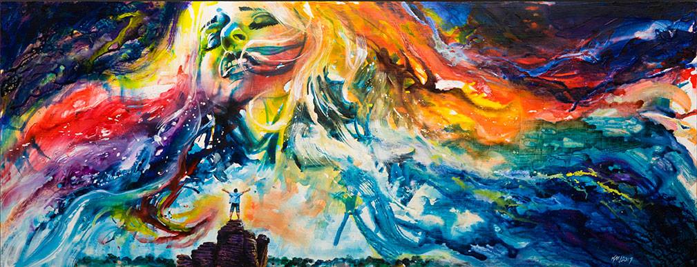 Summoning Anima A new painting done for fun. I wanted to combine some of the abstract techniques with some representational subject. 51.5 x 20 mixed media on wood panel