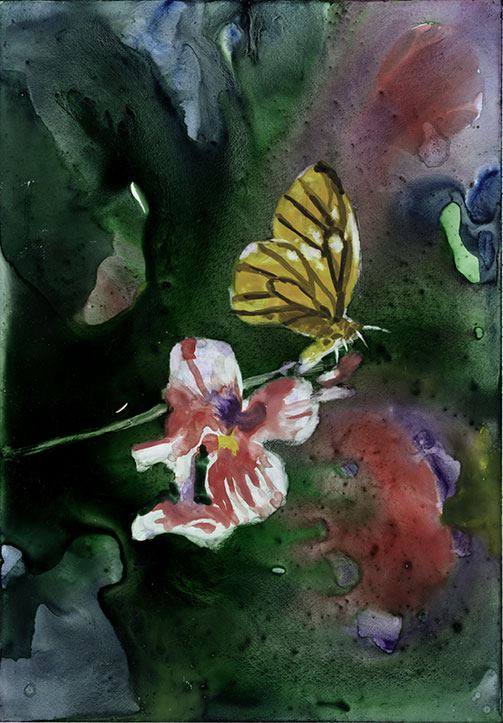 A fun exercise with ink on yupo paper (a very slippery paper good for paintings with movement), mounted to board.