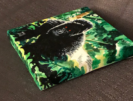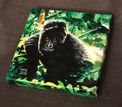 This is an original repainting of my magic card, Kird Ape, on 5" x 5" canvas (.50-.75" depth). Acrylic ink coated with an archival varnish. Painted around the edges in case it is not framed.