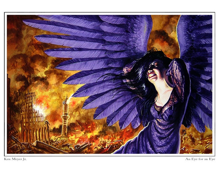 One of my best paintings, it was started as a class project and so I could have a new painting for an upcoming convention. It later appeared on the cover of a comic anthology.