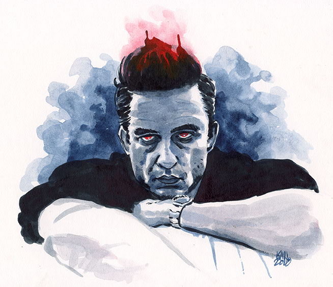 An original painting of Johnny Cash done for the loose online showcase, Inktober. 10 x 8