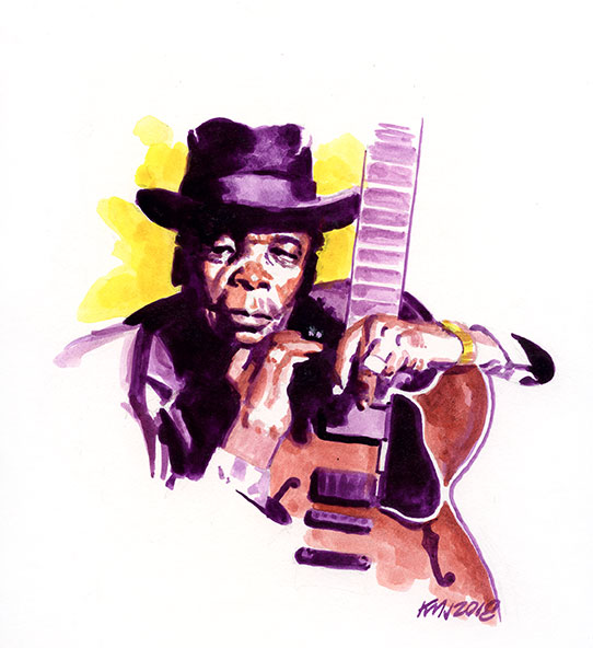 An original painting of John Lee Hooker done for the loose online showcase, Inktober. 8 x 8