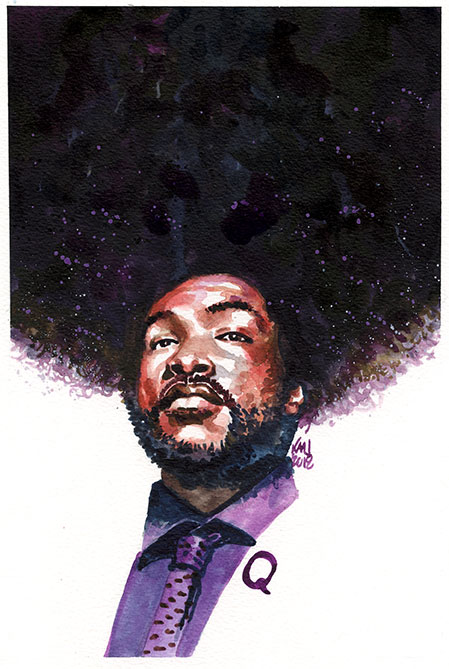 A new painting of Ahmir Khalib "Questlove" Thompson, from The Roots. Ink on illustration board. 8 x 10 inches.