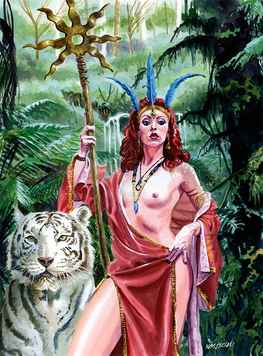 A new painting of a haughty empress and her tiger partner in the wild jungle. Larger sizes are available, just email me.