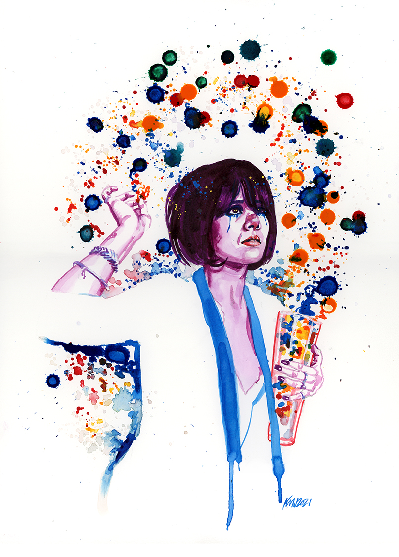 This is a portrait of Natasha Khan, from Bat For Lashes, a favorite group of mine. Ink on watercolor board, 12 x 16.