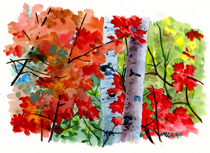 Some fall colors for your brain! Ink on illustration board, 9 x 7.