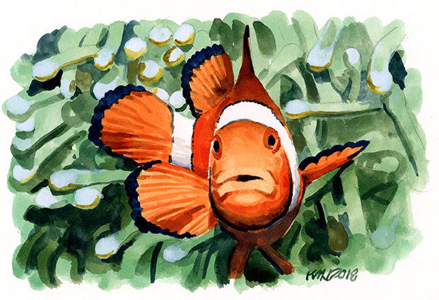 A possibly surprised clownfish, ink on illustration board, 8 x 5.5.