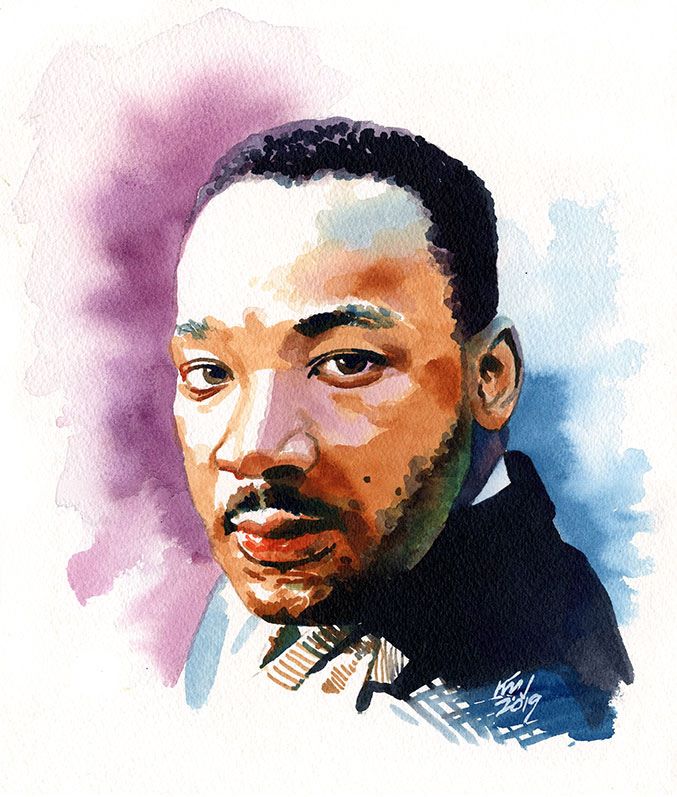 A portrait of Martin Luther King, Jr, ink on watercolor paper, 9 x 11.