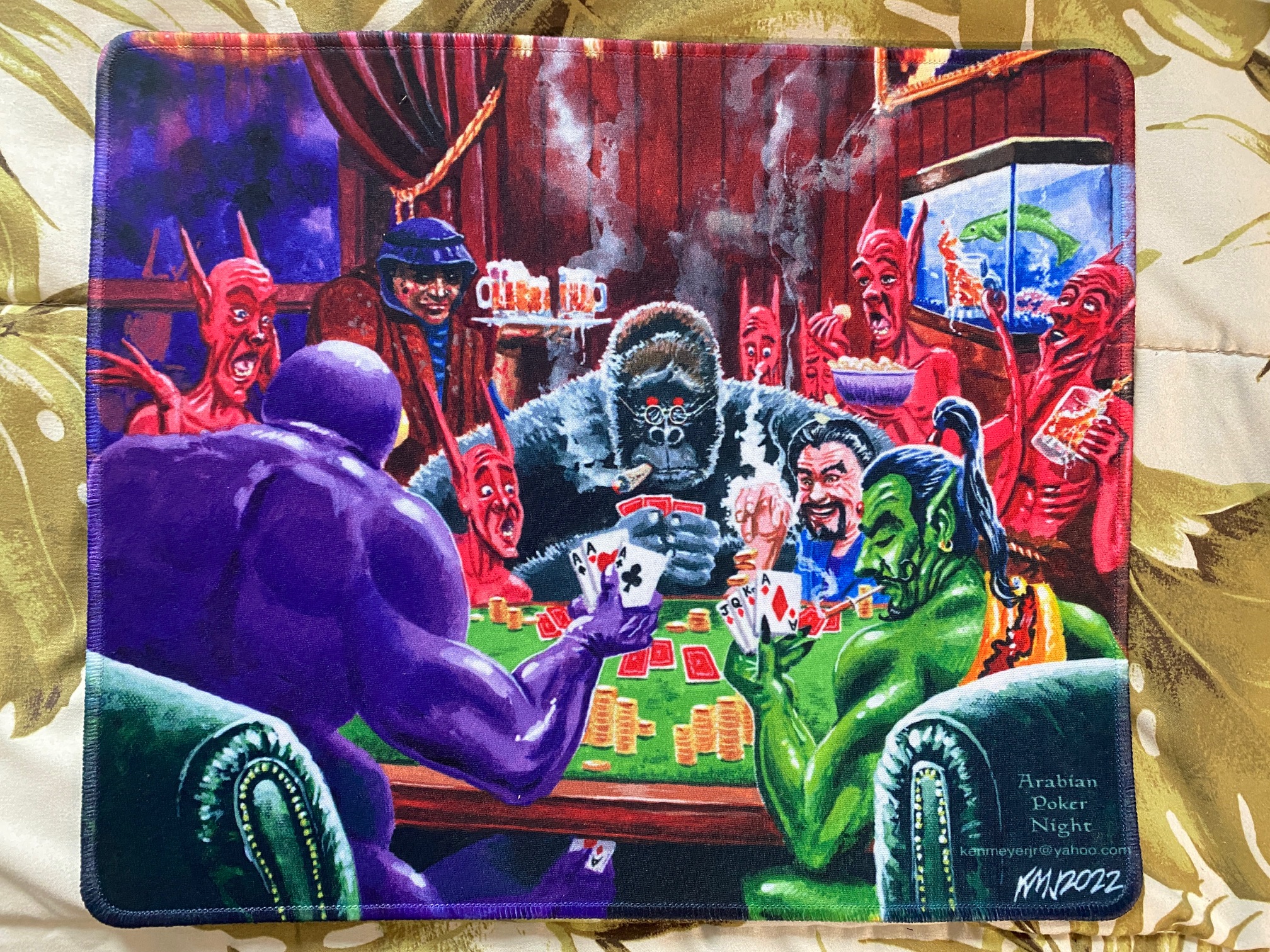 New! Big mousepads (13 x 11inches), stitched sides...they come signed unless otherwise stipulated. This is my new Arabian Poker Night mat!