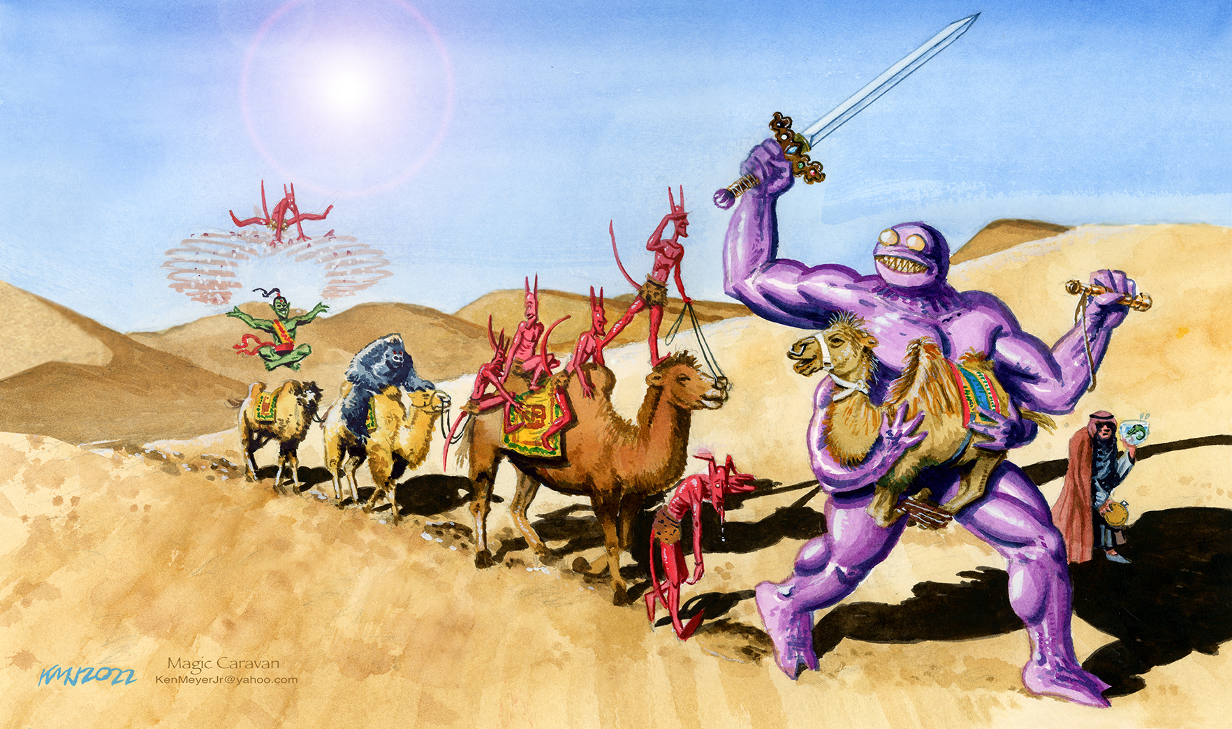 A new mat featuring my Magic characters, Guardian Beast, Kird Ape, Erhnam Djinn, Stone Throwing Devils and Mystic Remora!