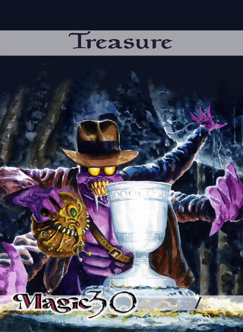 One of my Magic the Gathering Token cards. Remember, there is a ten card minimum (any ten cards). Also keep in mind, since I go to a lot of tournaments, supply levels change often. If I don't have what you want, I will order it as soon as possible. This is a new commemorative Magic30 token!