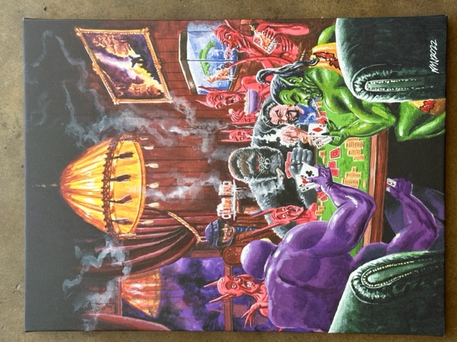 These are stretched around wooden frames and ready to hang (don't confuse that with a frame AROUND the print, by the way).