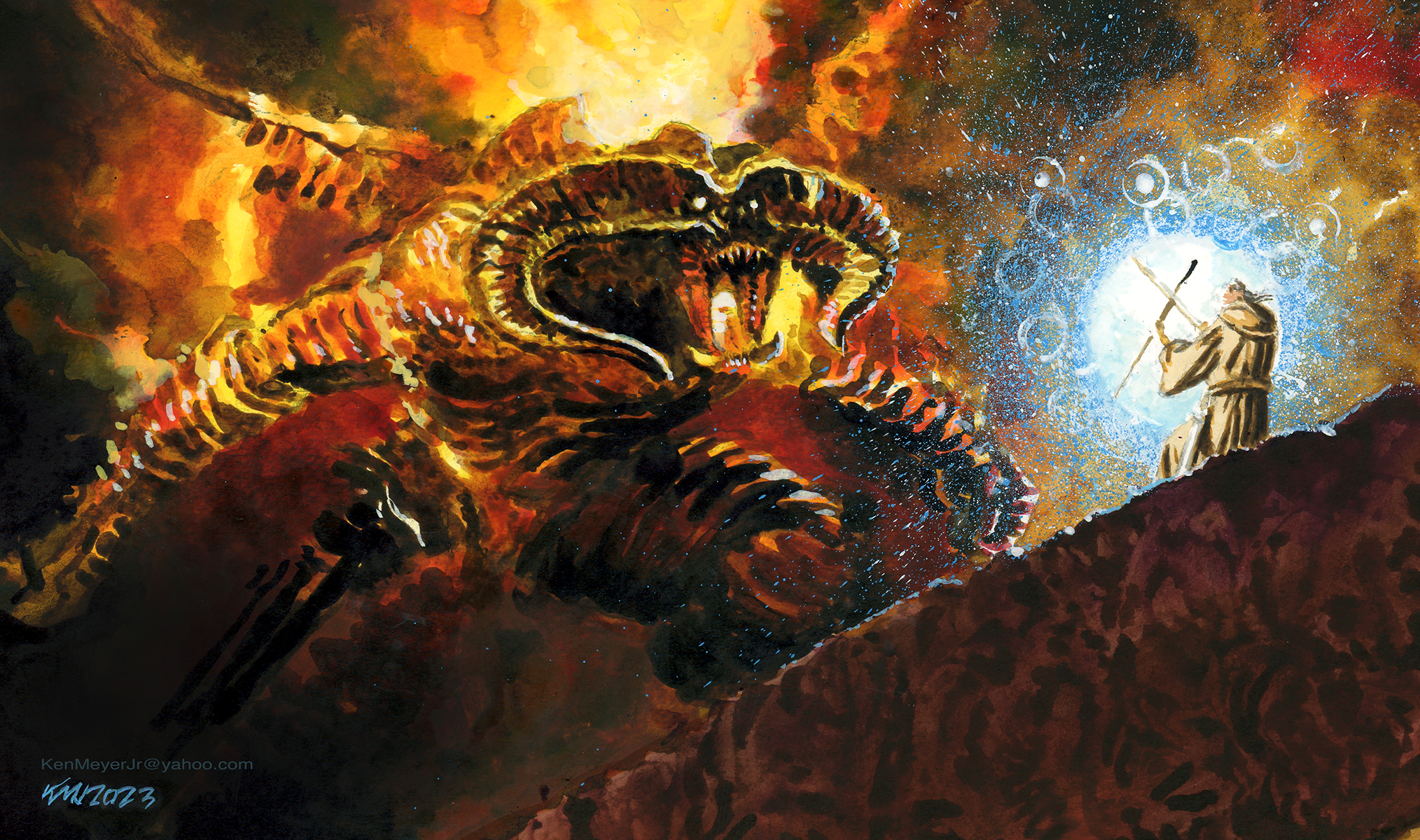 new! Some gray guy and...a dragon? This version is black bordered, a little thicker.