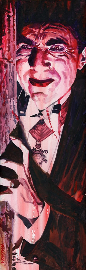 Part of a Universal Monsters series. Acrylic ink on canvas, framed and ready to hang.10 x 30 without frame.